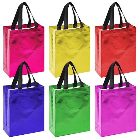 ถุงของขวัญผ้านอนวูฟเวนพร้อมหูจับถุงช้อปปิ้งงานปาร์ตี้และงานวันเกิดสีรุ้งแบบทันสมัยใช้ซ้ำได้